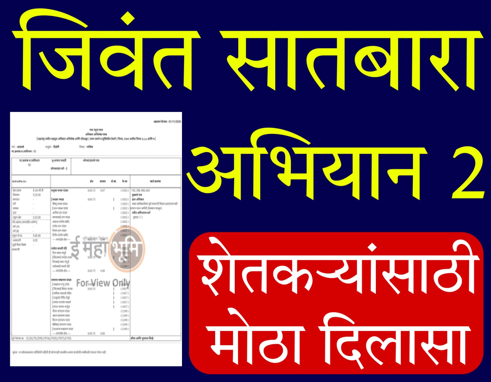 Jivant Satbara Campaignमहाराष्ट्र शासनाचे ‘जिवंत सातबारा अभियान 2.0’ शेतकऱ्यांसाठी दिलासादायक पाऊल आहे. वारस नोंदणी, सातबारा अद्ययावत, जमिनीवरील बोजे कमी करण्यासाठी ही मोहीम राबवली जात आहे.